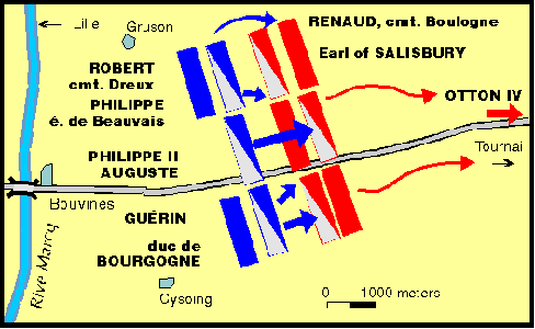 smaller marsh protecting the right flank. The first line was composed of archers protected by dismounted men-at-arms, the second