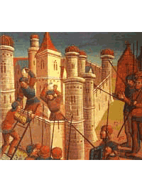 castle) if deception, treachery, starvation, or storm could not carry it. To protect the attackers from missiles, hot oil, and incendiaries launched